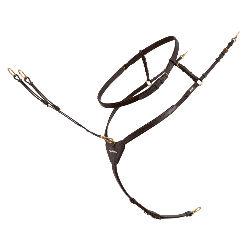 Das Vorderzeug “Ingrid Klimke“ von Passier überzeugt durch viele großartige Funktionen und einem wunderschönen Aussehen. Bei dem Material handelt es sich um hochwertiges Passier Zaumleder, welches sehr angenehm zu tragen und weich unterfüttert ist. Durch die Unterfütterung wird der angenehme Tragekomfort unterstützt und das Pferd spürt das Vorderzeug kaum. Die Martingalgabel ist durch Ringe abnehmbar, sodass Sie individuell und spontan entscheiden können, ob Sie mit oder ohne reiten möchten. Durch Karabinerhaken kann man das Vorderzeug schnell und einfach vorne am Sattel und unten am Sattelgurt befestigen. “Ingrid Klimke“ ist die perfekte Kombination aus Halsring und Vorderzeug und sollte bei diesen vielen nützlichen Funktionen und Eigenschaften, dem wunderschönen und schlichten Aussehen und dem großartigen Preis-Leistung-Verhältnis auch bei Ihren Reitutensilien keinesfalls fehlen!